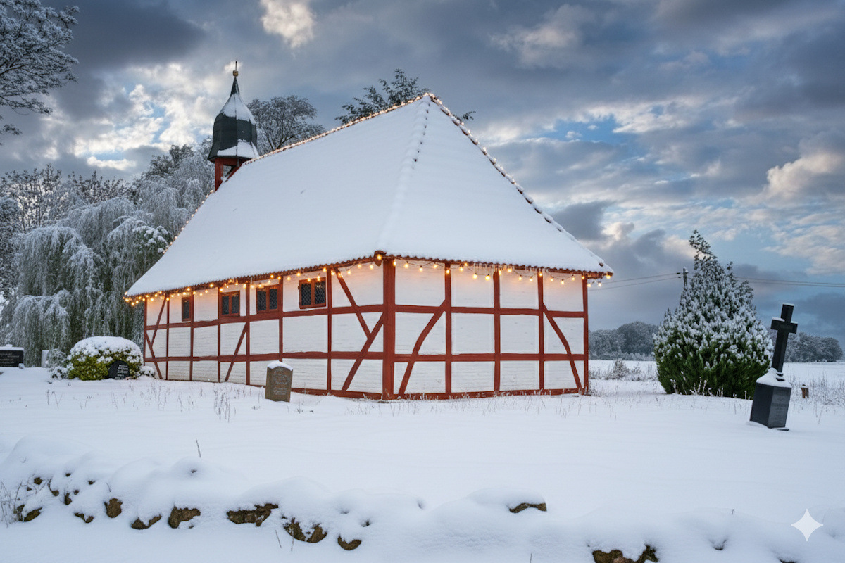 Aber ganz unabhängig davon, wie alt das Gebäude nun ist, kann man sich dem besonderen Charme dieser kleinen Fachwerkkapelle am Rand des ebenso kleinen Dorfes kaum entziehen.