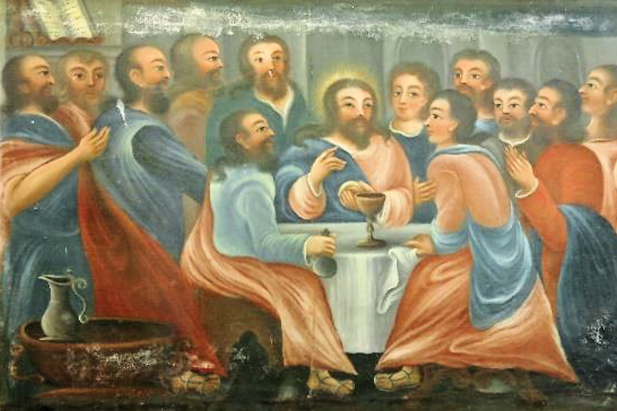 Titelbild: Deutlich sind die Schäden an den Gemälden aus der Mitte des 18. Jahrhunderts – wie hier am Abendmahlsbild – zu sehen.